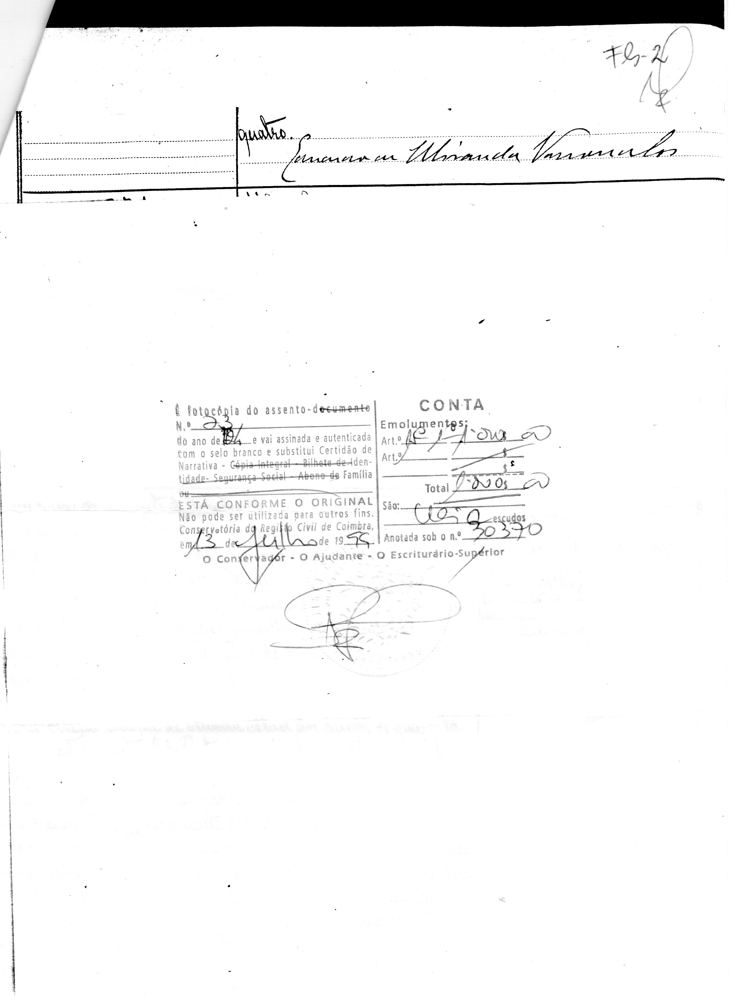 No seu assento de baptismo – à época ainda não existia registo civil – o qual é extraído do livro de baptismos da Paróquia de Ponte de Lima (Vila), nº 11, fls. 212, à guarda do Arquivo Distrital de Viana do Castelo, (cota 3.15.1.13), consta o seguinte: