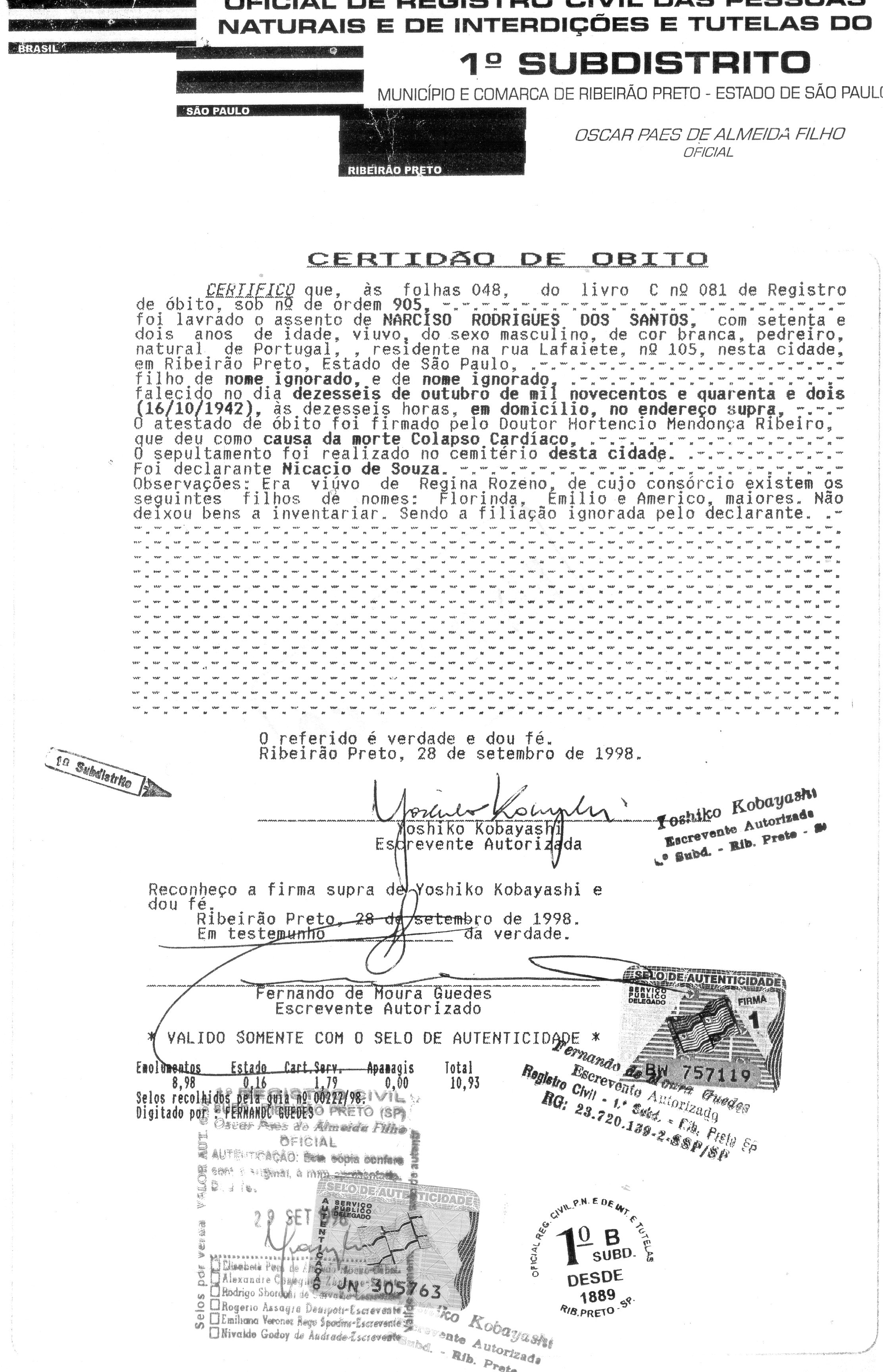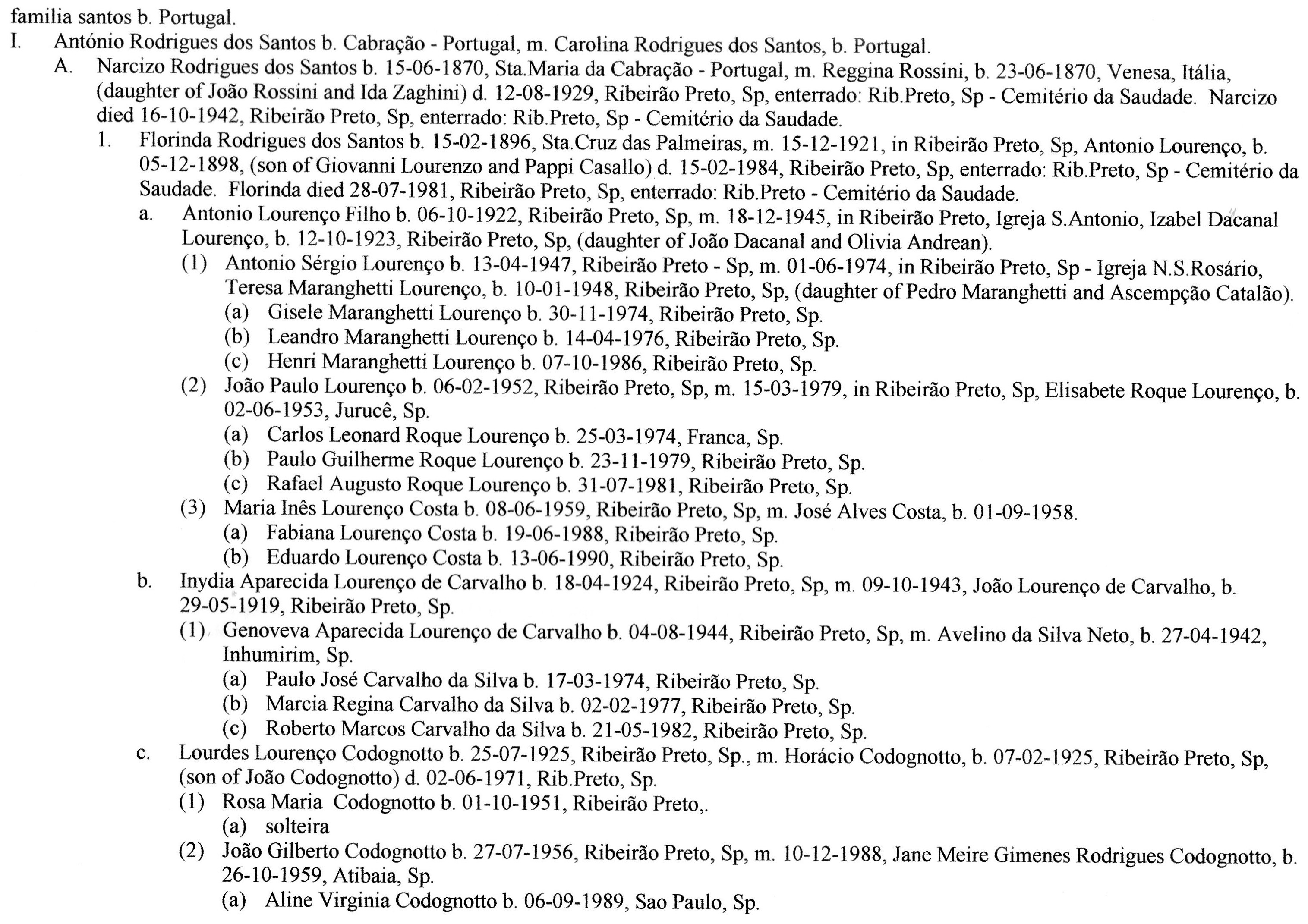 - João Rodrigues dos Santos. Natural de Cabração, concelho de Ponte de Lima. Casou com Maria Affonso, natural de Cabração;