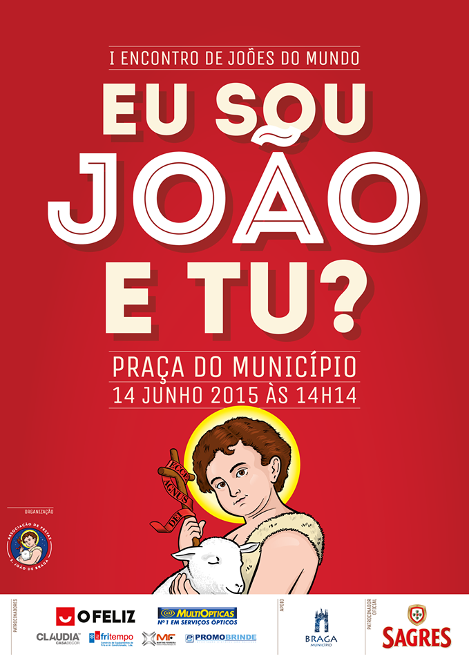A Cidade de Braga recebe no próximo Domingo, dia 14 de Junho, às14h15, o ‘I Encontro de Joões do Mundo’. A iniciativa, organizada pela Associação de Festas de São João de Braga no âmbito das Festas da Cidade, pretende juntar na Praça do Município o maior número de Joões e inscrever o evento no ‘Guiness World Records’ como o maior encontro de pessoas com o mesmo nome.
