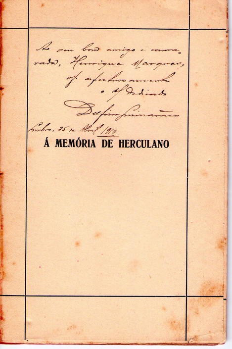 O livro cuja imagem reproduz foi pelo autor oferecido a Henrique Marques, na dedicatória tratado como “bom amigo e camarada”.