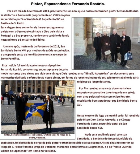 E, aproveitamos informar, que no âmbito do processo em curso, aguardava - mos um encontro no Vaticano para entrega duma imagem do santo mártir Limarense, no âmbito da promoção do seu culto, á semelhança de ofertas que realizamos no Canadá (Casa do Minho em Winipeg), Roma (Igreja de S. António dos Portugueses) e na Bélgica (sede da NATO).